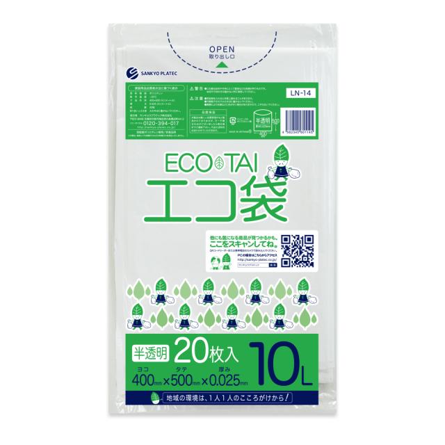 【バラ販売】LN-14bara ポリ袋 10リットル 0.025mm厚 半透明 20枚 / ゴミ袋 ごみ袋