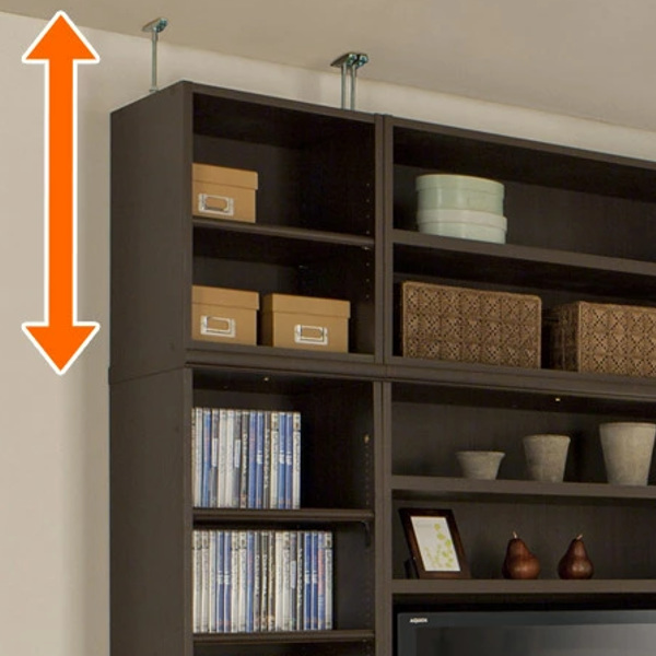 本体高さ178cm、211.1cmの本体に取り付けられる上置き棚です。しっかり突っ張って転倒防止するとともに、天井付近のスペースを収納として活用できます。
