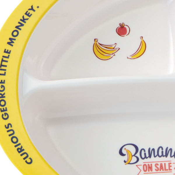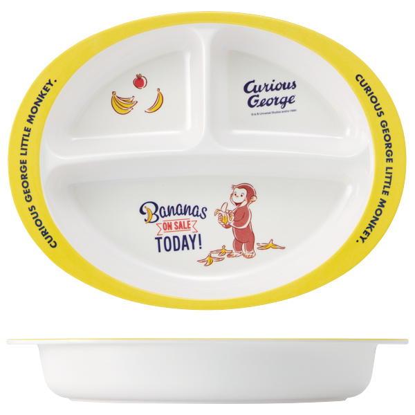 ●おさるのジョージが描かれた、軽くて丈夫なメラミン製の子供用ランチプレートです。