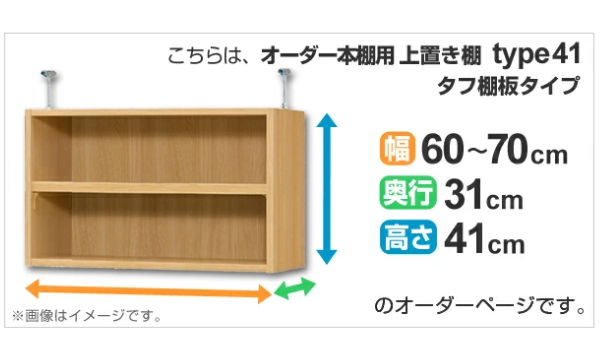 専用 上置き棚 タフ棚板 type41 オーダー本棚 奥行31cm 幅60-70cm用 ( オーダーメイド 天井つっぱり 本棚 収納ラック セミオーダー )