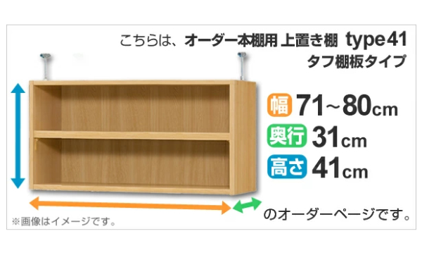 専用 上置き棚 タフ棚板 type41 オーダー本棚 奥行31cm 幅71-80cm用 ( オーダーメイド 天井つっぱり 本棚 収納ラック セミオーダー )