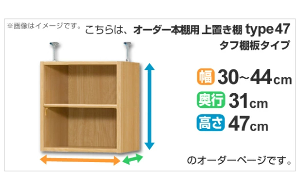 専用 上置き棚 タフ棚板 type47 オーダー本棚 奥行31cm 幅30-44cm用 ( オーダーメイド 天井つっぱり 本棚 収納ラック セミオーダー )