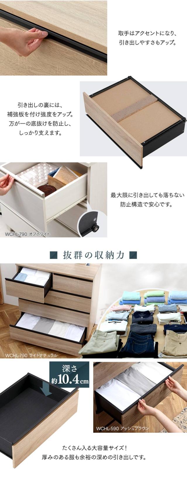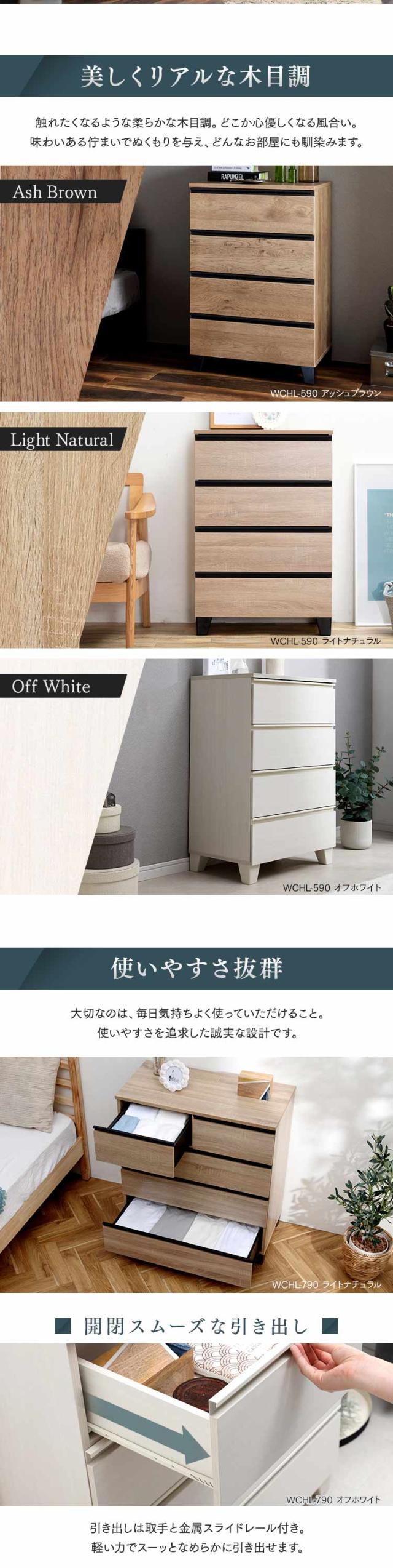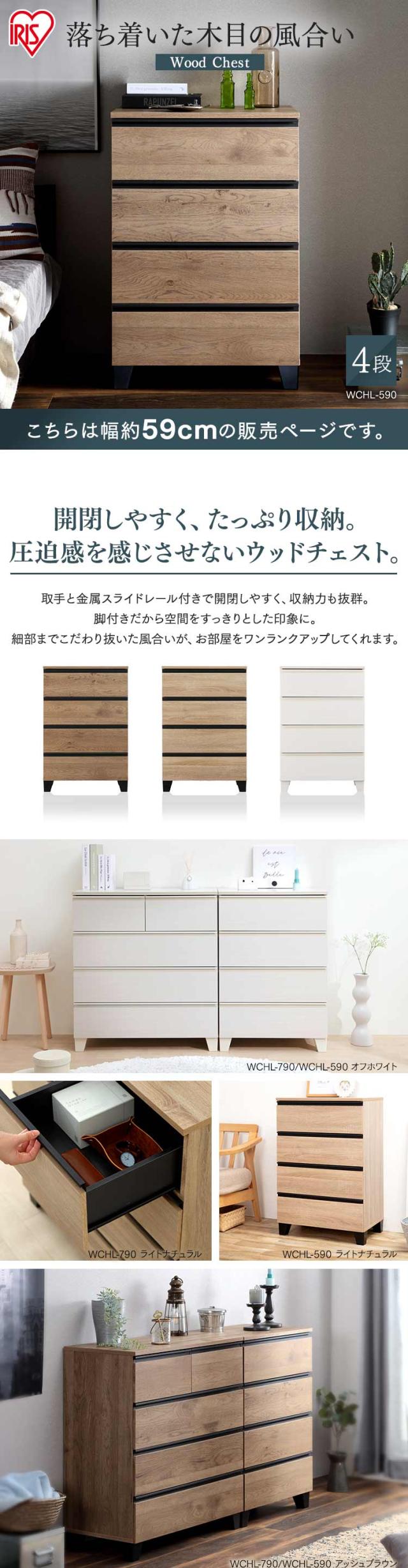★全品対象250円offクーポン★ チェスト 棚 アイリスオーヤマ 4段 ウッドチェスト WCHL-590 アッシュライトナチュラル オフチェスト 引き出し タンス 箪笥 脚 木製 木目調 新生活 インテリア