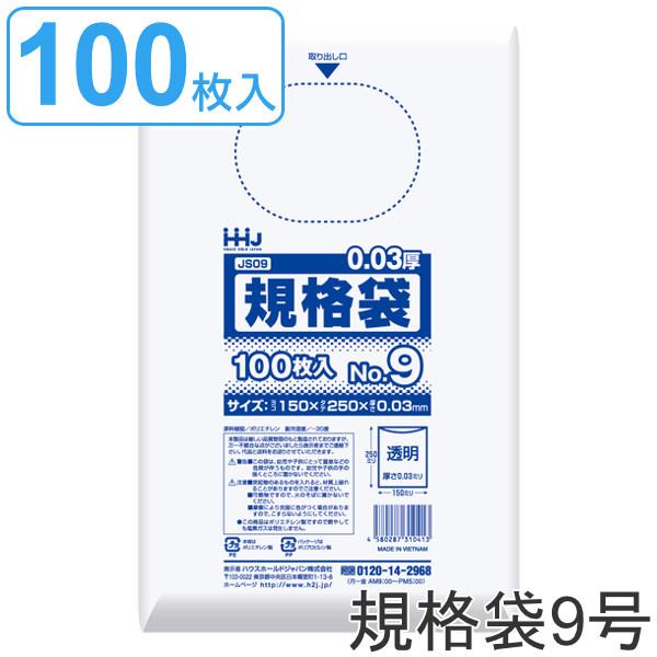 ゴミ袋 規格袋 9号 食品検査適合 厚さ0.03mm 100枚入り 透明 ( ポリ袋 100枚 クリア 25×15cm 食品 キッチン 台所 調理 ごみ袋 A5 透明ポリ袋 小分け袋 ポリエチレン 袋 規格 25cm 15cm )