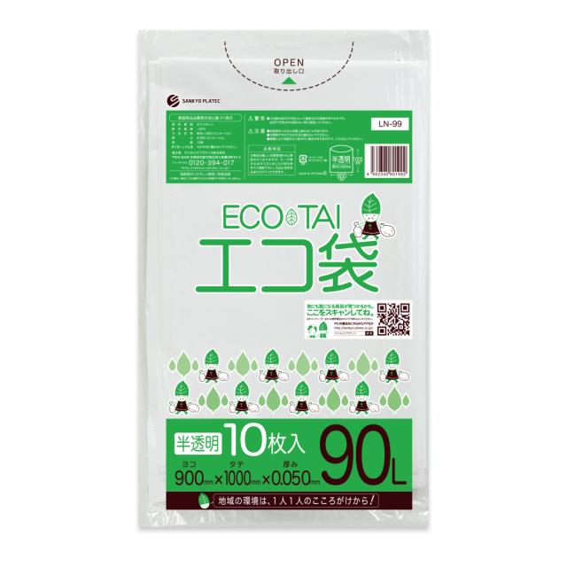 【バラ販売】LN-99bara ポリ袋 90リットル 0.050mm厚 半透明 10枚 / ゴミ袋 ごみ袋