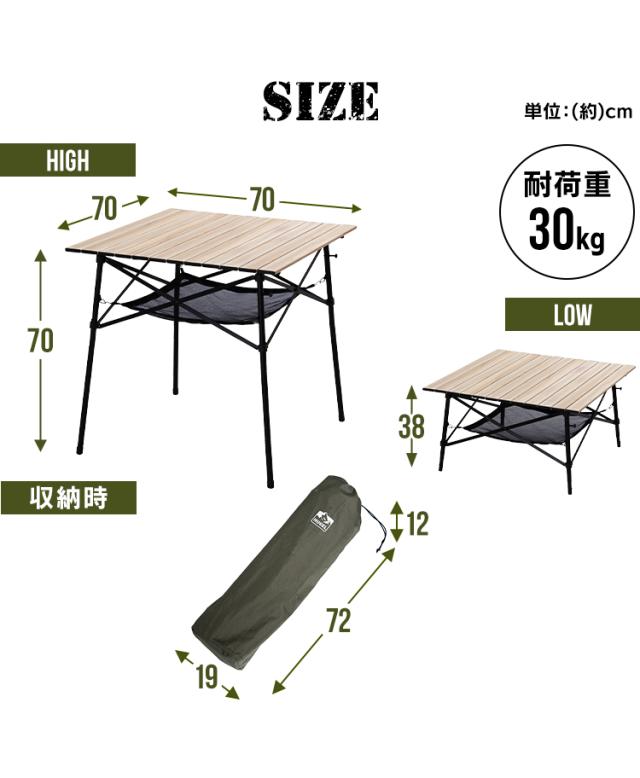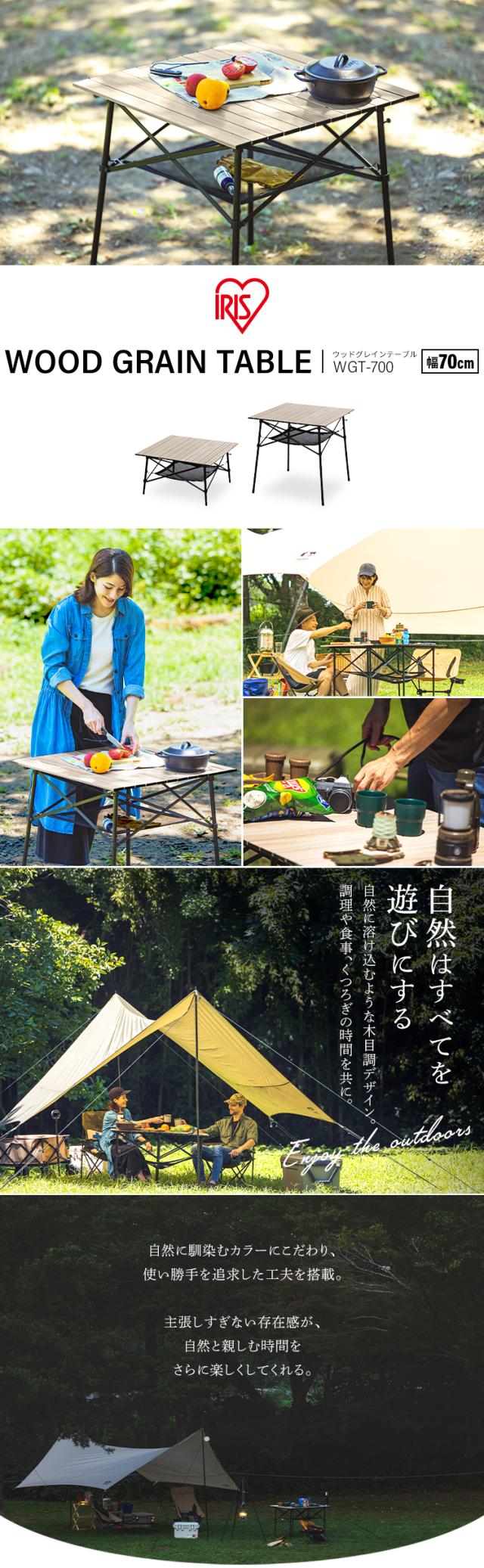 \CAMPHACKで紹介されました!/ウッドグレインテーブル WGT-700 ナチュラル キャンプ アウトドア レジャー テーブル ローテーブル ハイテーブル ロールトップ 折りたたみ 持ち運び 収納 高さ調節 アイリスオーヤマ 送料無料 父の日 ギフト