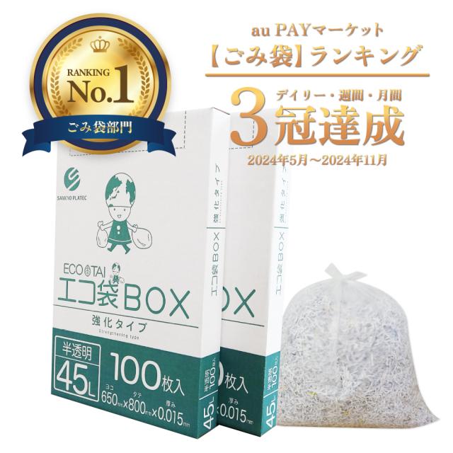 ゴミ袋 45リットル 箱タイプ 薄手 半透明 65x80cm 0.015mm厚 100枚x2小箱 BX-530-2kobako ポリ袋 ビニール袋 45l 箱型 収納 セット販売 送料無料 サンキョウプラテック