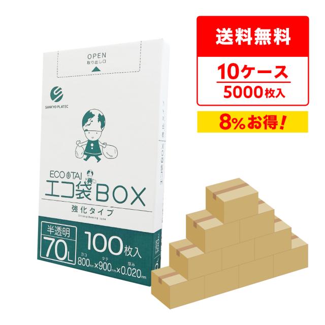 ポリ袋 ゴミ袋 箱タイプ 70リットル 薄手 半透明 80x90cm 0.020mm厚 100枚x5小箱x10箱 BX-730-10 /ごみ袋 70l ナチュラル 送料無料