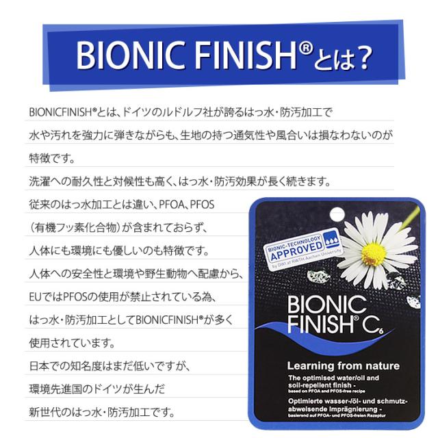 はっ水・防汚加工としてBIONICFINISHが多く使用されています。
