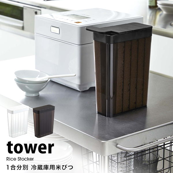 タワー 米びつ おしゃれ スリム 1合 分別 冷蔵庫 用 米びつ キッチン収納 tower 山崎実業 ライスストッカー 容量 2L 白 黒 ホワイト ブラック