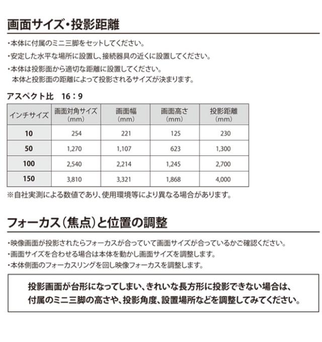 投影サイズ:10-150インチ