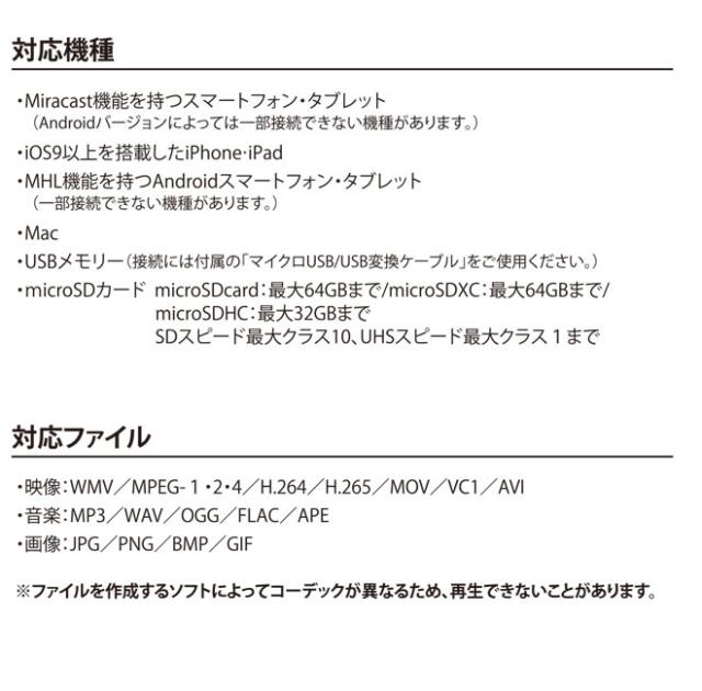 接続する全てのメディアやファイルの動作を保証することはできません。