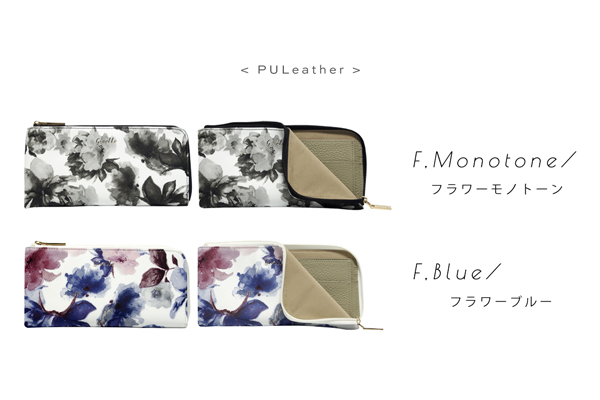 水や汚れに強いPUレザーを使用した、フラワーデザイン2カラー。