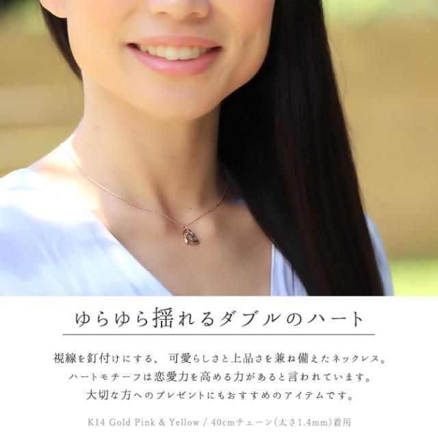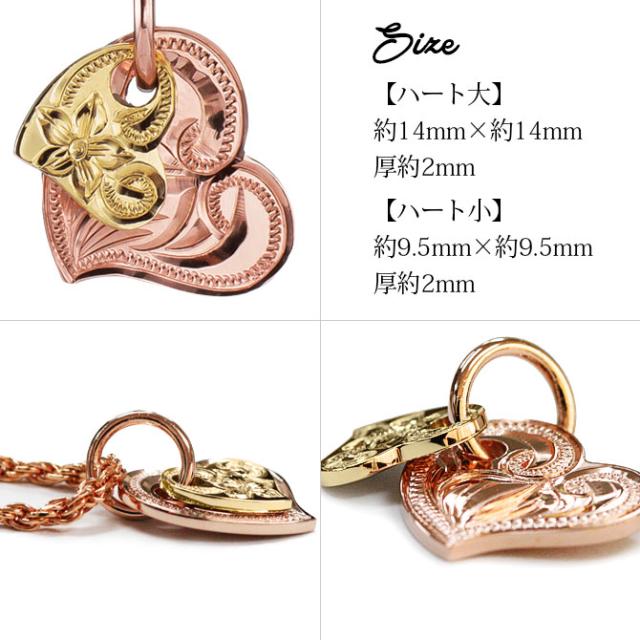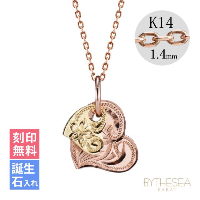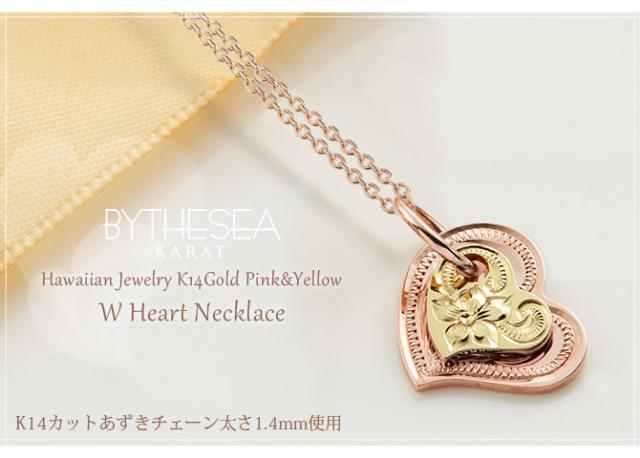 ゴールド ネックレス ハワイアンジュエリー ネックレス 刻印 無料 誕生石入れ可 Wハート 14K K14ピンク&イエローゴールド 14k k14カットあずきチェーン太1.4mm ギフトラッピング可能 彼女 妻 女性 レディース プレゼント クリスマス 【品番:CG-GP101PY-CH1020】