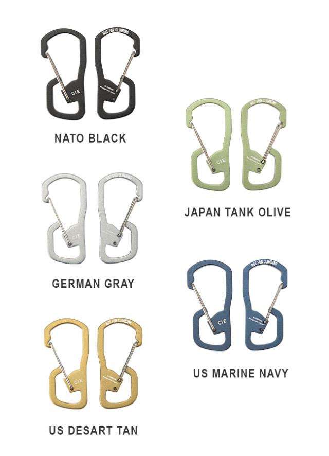 | 1パッケージにカラビナ2個セット販売のCIEオリジナルカラビナ ・本体素材にアルミニウムを使用 ・アルミニウムを採用する事で軽量でありながら錆びにくい ・フレーム部分は一体成型によりなめらかな仕上がり ・厚みのあるアルミニウム板を型抜きしエッジ部分を研磨 ・仕上げにアルマイト塗装を施したCIEオリジナルのミリタリーライクなカラー展開 ・構造は1つのゲートで2室となっており、 下層部は鍵など抜けにくい構造 |