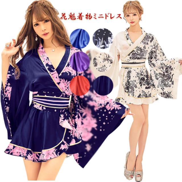 シックなカラーと和柄が印象的な花魁着物ミニドレス。 イベントコスチュームとしてはもちろんダンス衣装,ダンス部の学校の衣装などに皆で揃えて購入される方も多いです。 羽織って交差し紐を穴に通し結び、付属の帯を巻くだけ誰でも簡単に着用できます。 羽織タイプのためLサイズぐらいまでは対応可能。 当店おすすめ花魁着物ミニドレス。 |