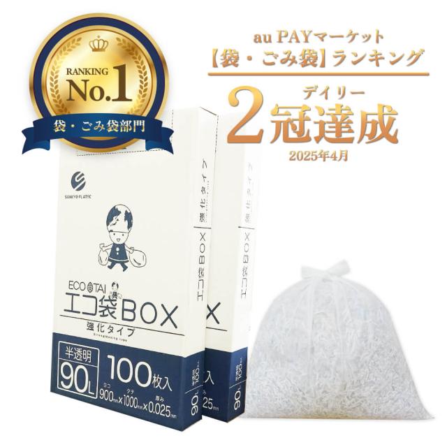 ポリ袋 箱タイプ 90リットル 90x100cm 0.025mm厚 半透明 100枚x2小箱 BX-935-2kobako / ゴミ袋 ごみ袋 業務用 送料無料