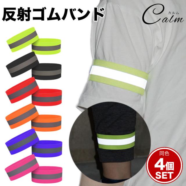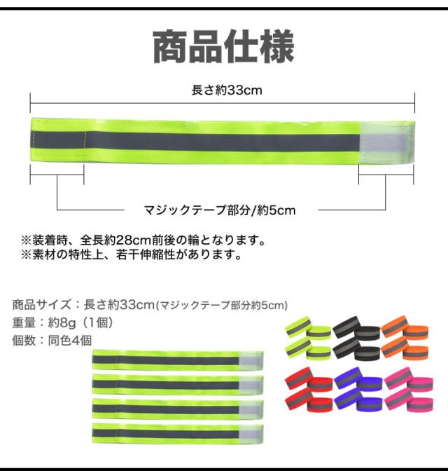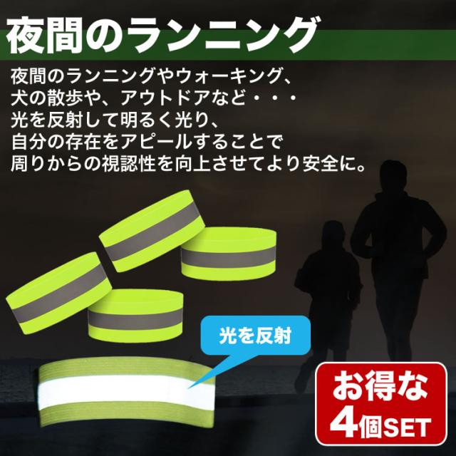 反射バンド アーム バンド 4個セット マジックテープ式 ランニング ウォーキング ジョギング 夜間 散歩 反射材 反射板