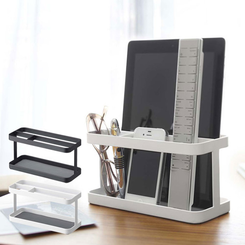 リビングでいつも迷子になってしまうリモコンやメガネ、タブレットにスマホなどを一緒にすっきり収納できる便利な『 タブレット&リモコンラック 』がtowerから登場。