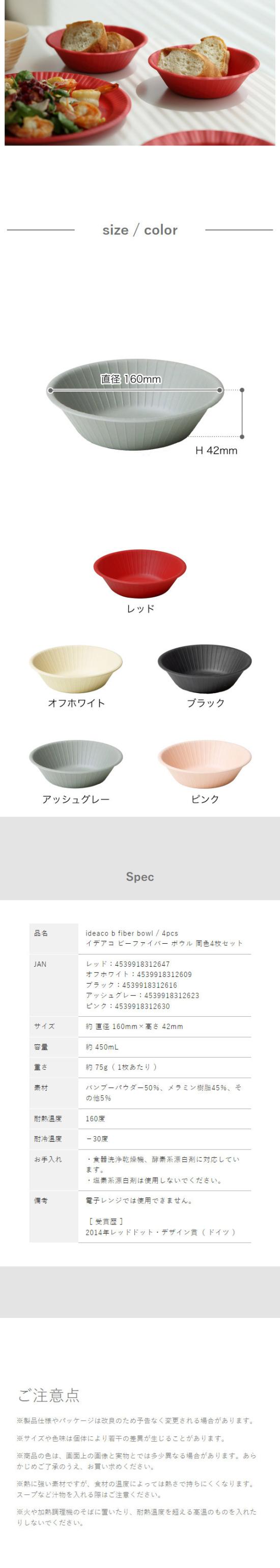 ■ ideaco b fiber bowl / 4pcs ビーファイバー ボウル 同色4枚セット