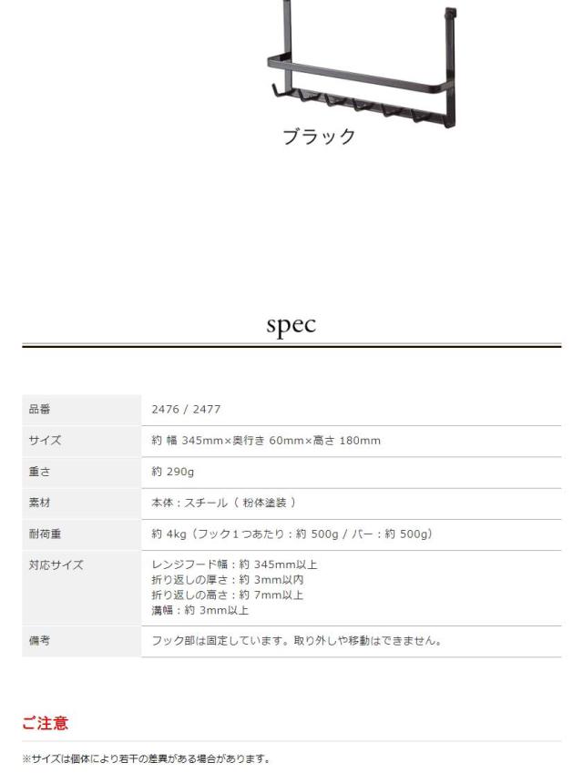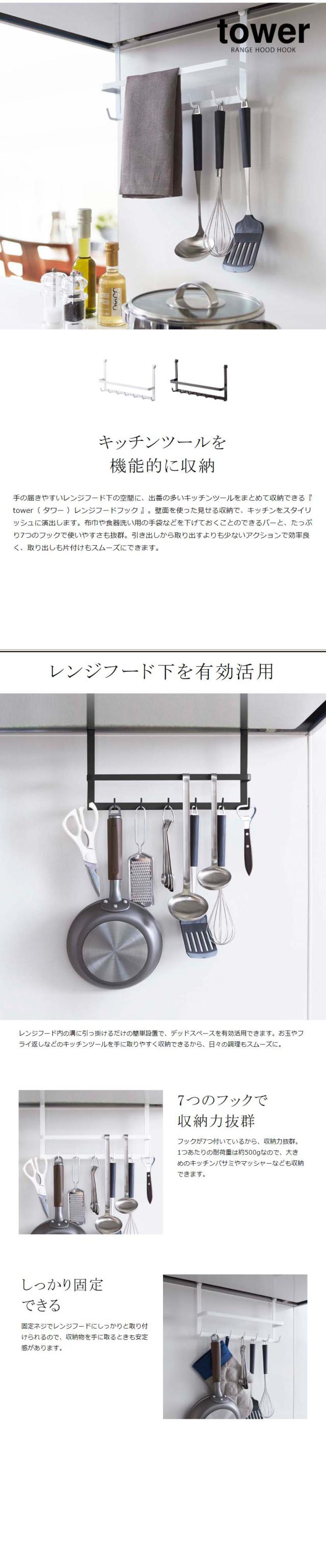 [ レンジフードフック タワー ]山崎実業 tower キッチン 収納 レンジフード フック キッチンツール キッチン収納 キッチンツールフック キッチンツールホルダー レンジフードハンガー コンロ 吊るす 2476 2477 ホワイト ブラック【送料無料】
