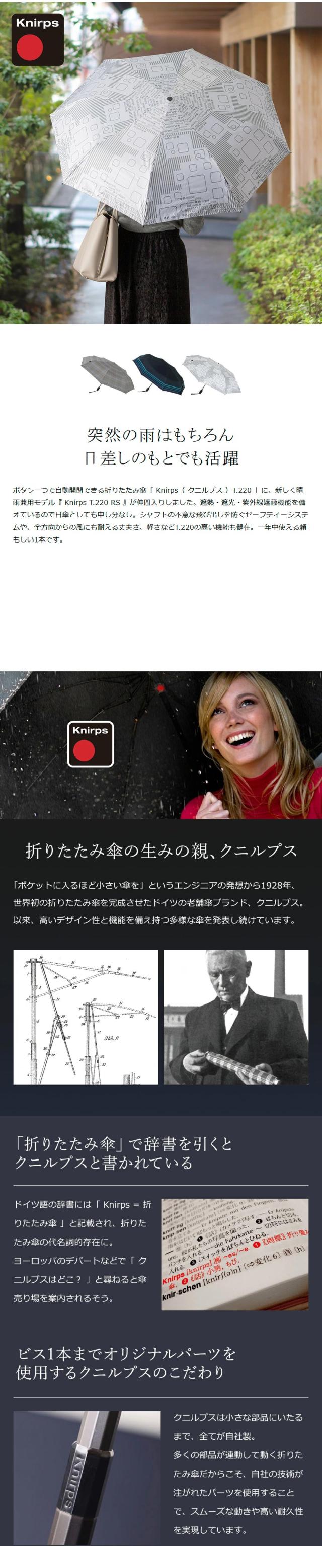 [ Knirps T.220RS ]クニルプス 正規販売店 折りたたみ傘 T.220 T220 Rain or Shine 自動開閉 ワンタッチ開閉 折り畳み傘 雨傘 折畳傘 無地 軽量 軽い 日傘 ジャンプ傘 晴雨兼用 おしゃれ 紫外線 ビジネス レディース メンズ ギフト 卒業祝い