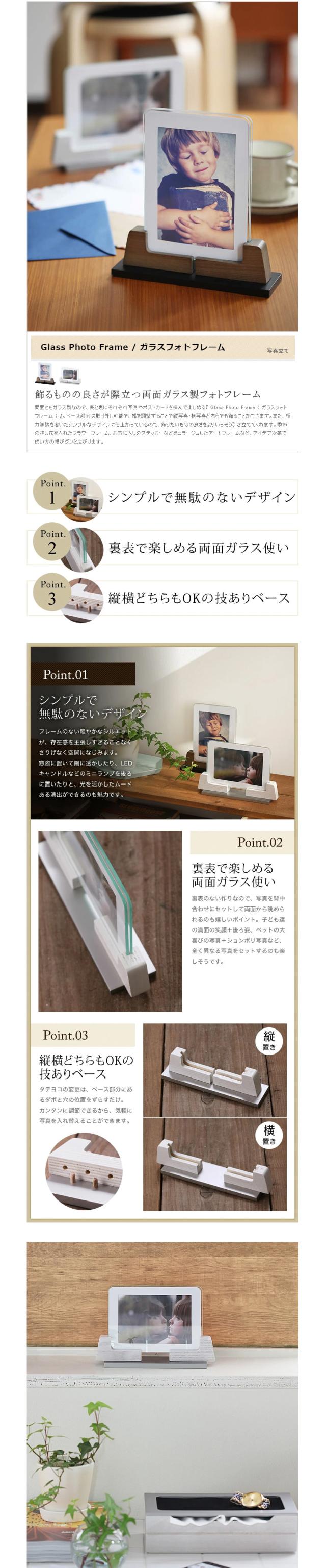 両面ともガラス製なので、表と裏にそれぞれ写真やポストカードを挟んで楽しめる『 Glass Photo Frame 』。ベース部分は取り外し可能で、幅を調整することで縦写真・横写真どちらでも飾ることができます。また、極力無駄を省いたシンプルなデザインに仕上がっているので、飾りたいものの良さをよりいっそう引き立ててくれます。季節の押し花を入れたフラワーフレーム、お気に入りのステッカーなどをコラージュしたアートフレームなど、アイデア次第で使い方の幅がグンと広がるフォトフレームです。