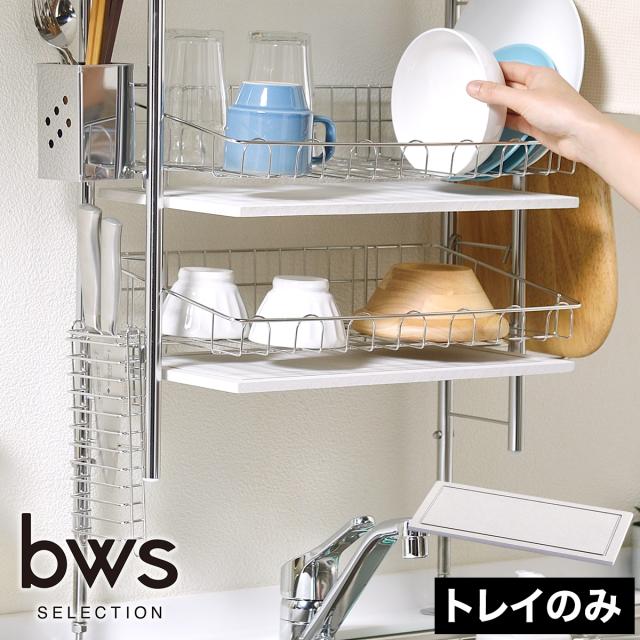 『 KAWAKI( カワキ )モイストレイ 突っ張りタイプ 』は、「 KAWAKI 水切りラック 突っ張りタイプ SS-310217 」専用のトレイ。交換用としてはもちろん、単品で水切りボードとして使うこともできます。付属のクッションゴムを底面に貼ってシンクサイドに置けば、洗ったグラスやカトラリーなど食器の水切りとして活躍。水滴を素早く吸収し、シンク周りを爽やかに保ってくれます。bws SELECTION( ビーワース セレクション )の商品です。