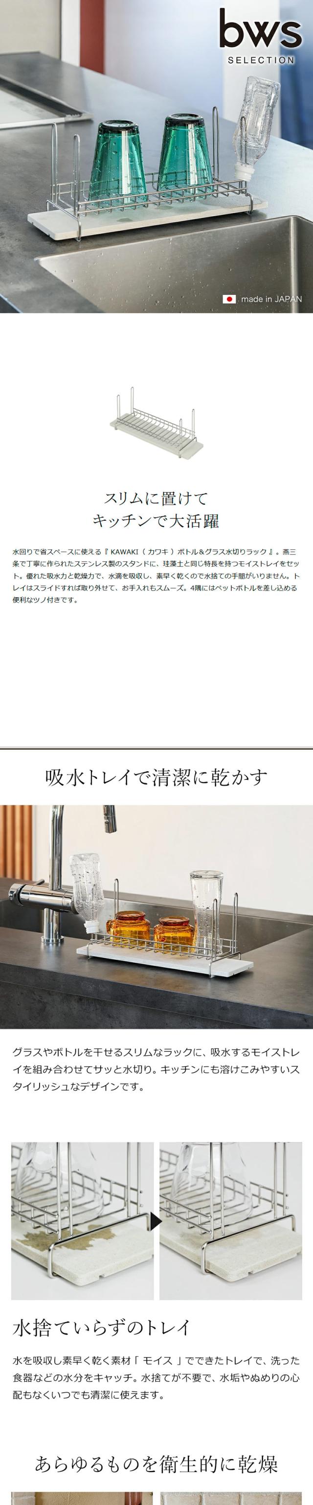 [ KAWAKI ボトル&グラス水切りラック ]ボトルスタンド 水切りラック 水筒 水切りスタンド ステンレス ペットボトル 水切りトレー 吸水 速乾 ドライングボード 珪藻土 省スペース 日本製 燕三条 カワキ【送料無料】