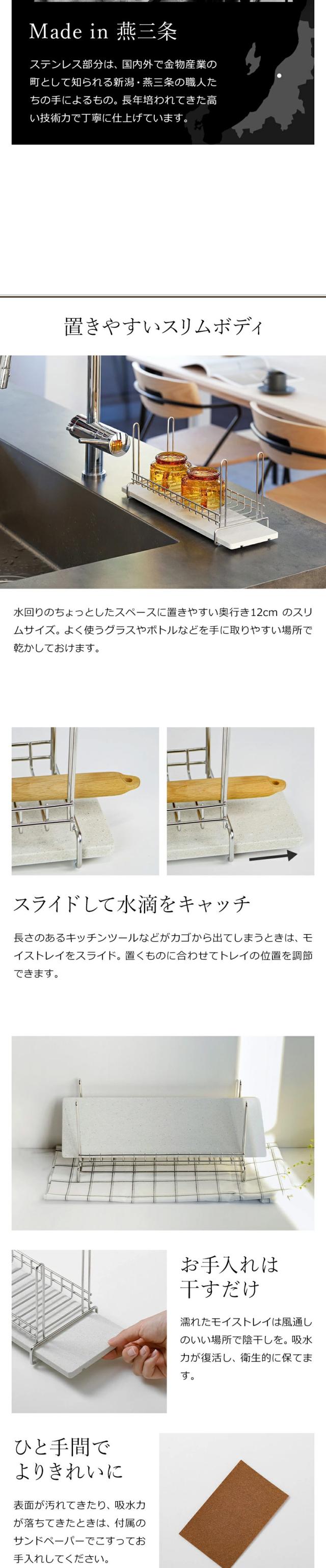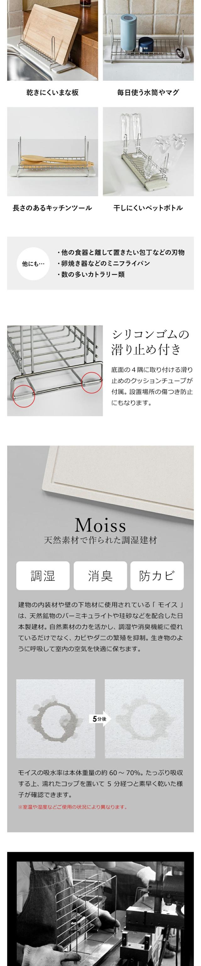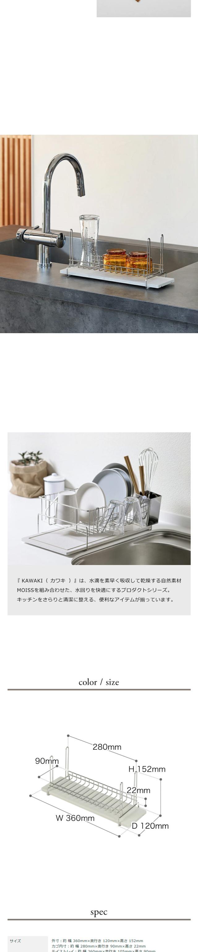水回りで省スペースに使えるKAWAKI( カワキ )の水切りラック。モイストレイが水滴を吸収し、素早く乾くので水捨ての手間がいりません。ペットボトルが乾かしやすい便利なツノ付き。