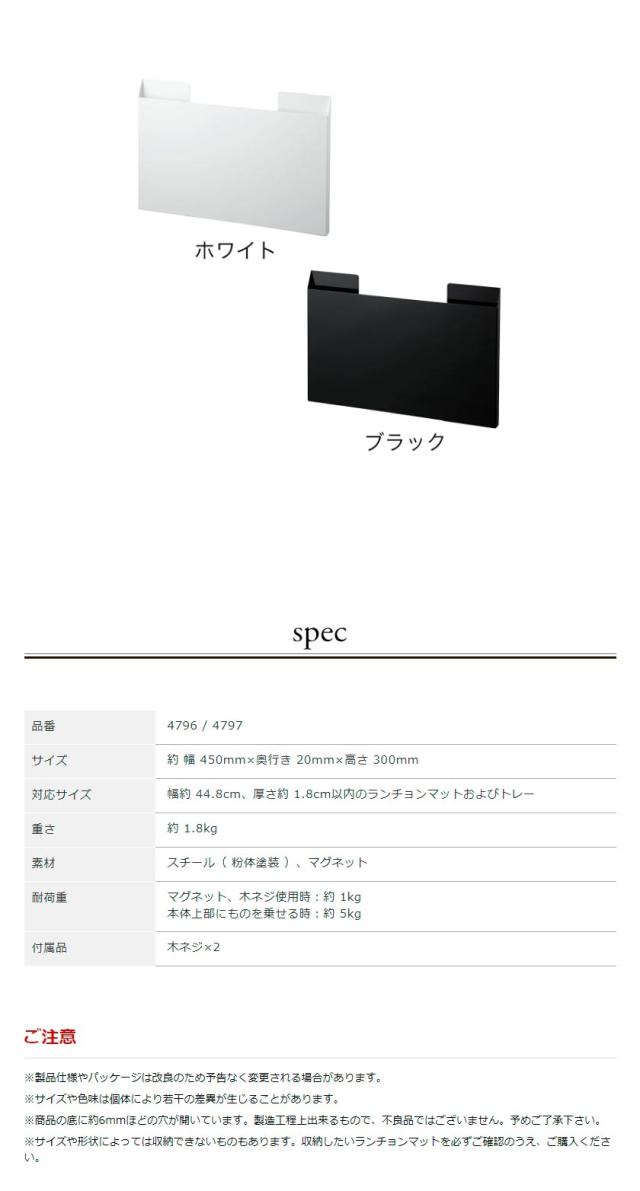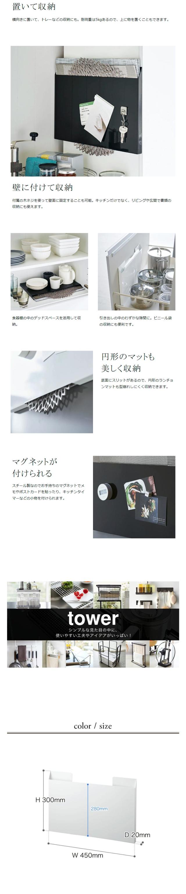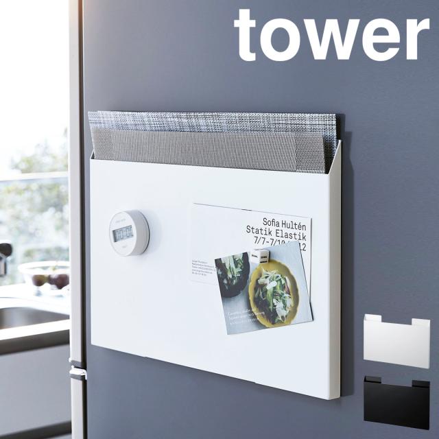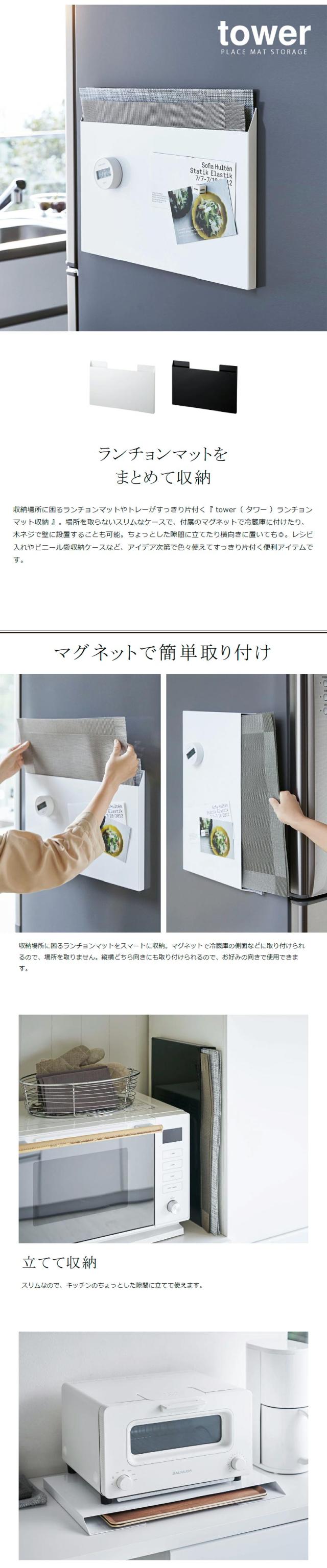 [ ランチョンマット収納 タワー ]山崎実業 tower マグネット 収納 ランチョンマット収納 冷蔵庫横 磁石 トレー お盆 ラック すき間 スリム プレイスマット 壁掛け 整理 レターケース おしゃれ ホワイト ブラック 4796 4797【送料無料】