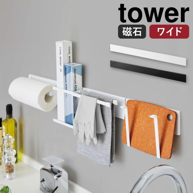 [ マグネットキッチンウォールバー タワー ワイド ]山崎実業 tower キッチン収納 おしゃれ ウォールバー 磁石 収納 ラック キッチンツール シンプル マグネット 壁面収納 モノトーン yamazaki ブラック ホワイト 5104 5105【送料無料】