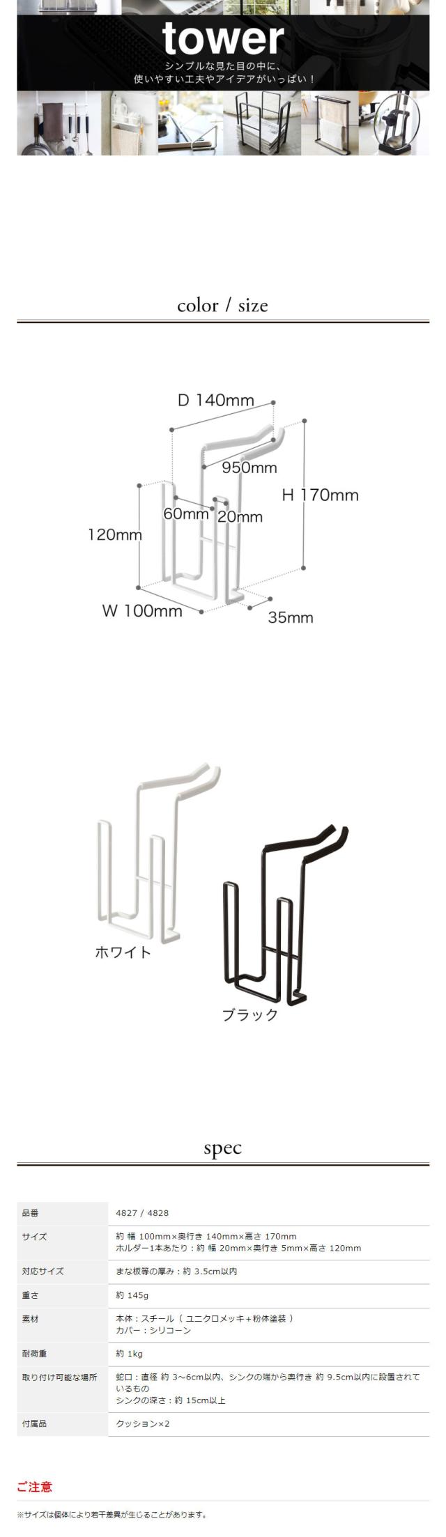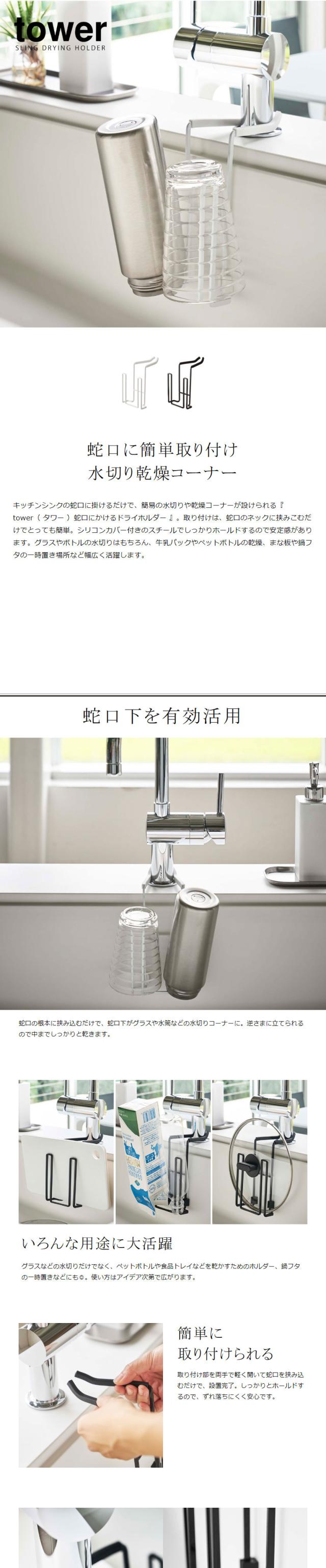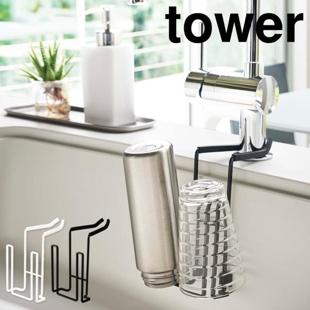 [ 蛇口にかけるドライホルダー タワー ]山崎実業 tower キッチン 台所 シンク 水切り 乾燥 一時置き 食器乾燥 グラス まな板 カッティングボード 鍋蓋 シンプル おしゃれ モノトーン yamazaki ブラック ホワイト 4827 4828