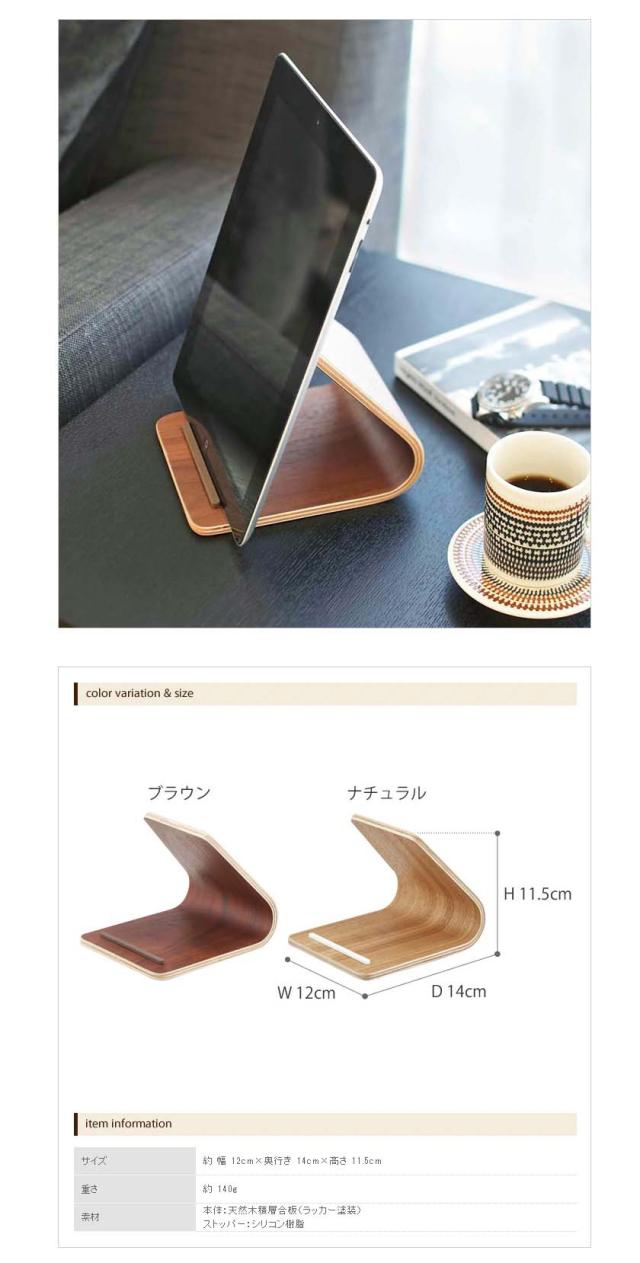 iPadやタブレット、スマホを立てて見られる♪天然木と緩やかな曲線でモダンな北欧デザインのタブレットキーパー。リビング、キッチン、仕事部屋に。本も飾れて書類立てとしても