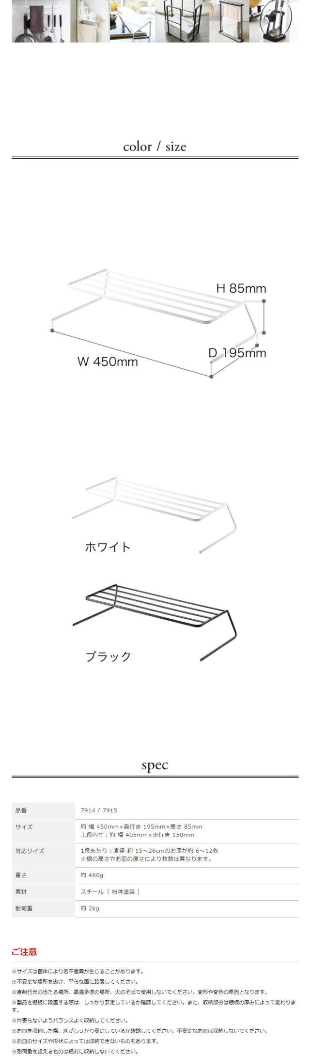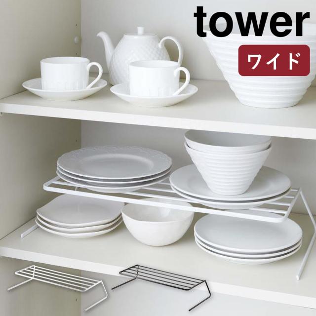雑然としがちな棚の中の食器類をすっきりと整頓できる『 tower( タワー )ディッシュストレージ ワイド 』。棚を2段に分けて収納できるので、お皿のサイズや種類ごとに並べて出し入れがスムーズになります。裏返して棚板に引っかけて使うこともでき、棚板下のデッドスペースに小皿やこまごましたキッチン雑貨もまとめて収納。食器棚をムダなく活用できるラックです。色はブラック(黒)とホワイト(白)の2色。“ヤマジツ”の愛称で親しまれる山崎実業は、「くらしを整える」商品を提案し続けています。