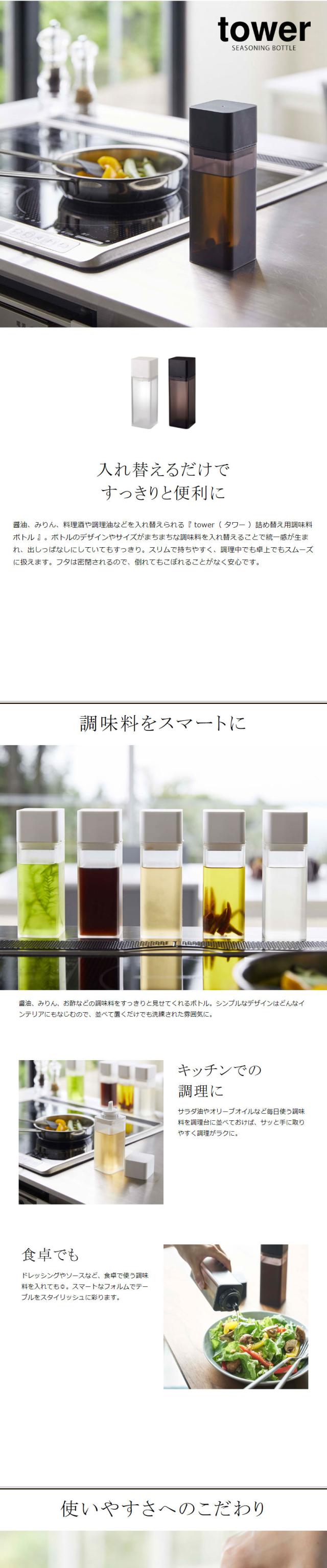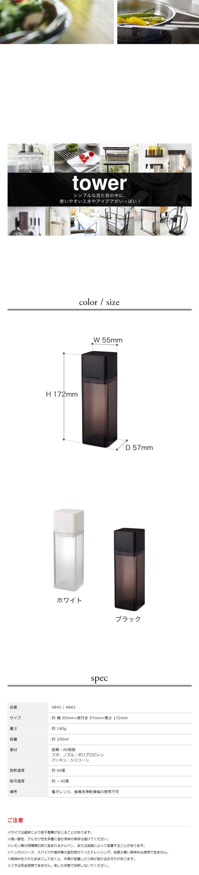 [ 詰め替え用調味料ボトル タワー ]山崎実業 tower 調味料入れ 醤油差し オイルボトル オイルポット 調味料ボトル 冷蔵庫収納 ドレッシング みりん 酢 油 入れ キッチン 収納 シンプル おしゃれ モノトーン yamazaki ブラック ホワイト 4842 4843