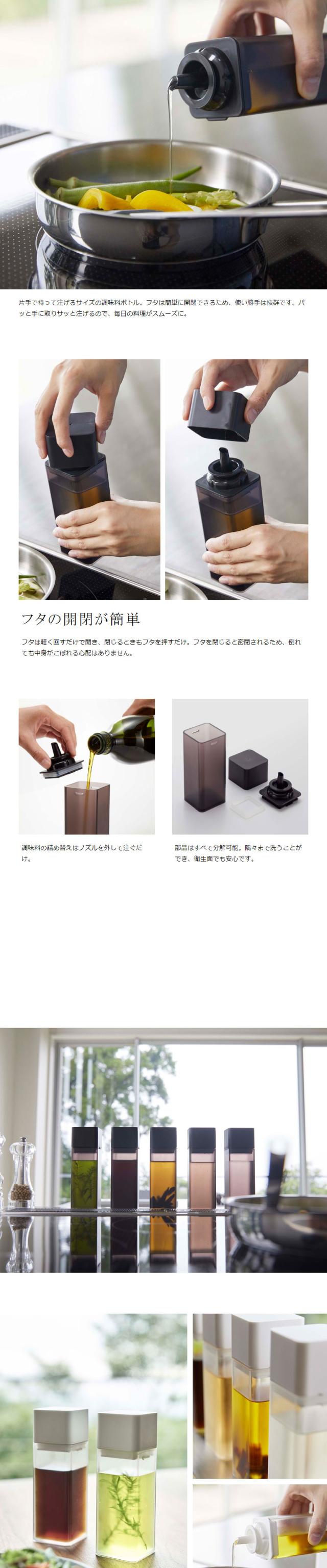 醤油、みりん、料理酒や調理油などを入れ替えられる『 tower( タワー )詰め替え用調味料ボトル 』。ボトルのデザインやサイズがまちまちな調味料を入れ替えることで統一感が生まれ、出しっぱなしにしていてもすっきり。スリムで持ちやすく、調理中でも卓上でもスムーズに扱えます。フタは密閉されるので、倒れてもこぼれることがなく安心です。“ヤマジツ”の愛称で親しまれる山崎実業は、「くらしを整える」商品を提案し続けています。