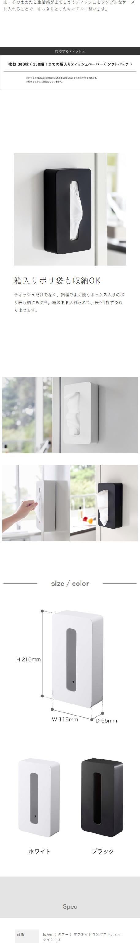 [ マグネットコンパクトティッシュケース タワー ]山崎実業 tower ティッシュケース マグネット ポリ袋 収納 磁石 ティッシュボックス キッチン おしゃれ ティシュ 冷蔵庫 シンプル yamazaki ホワイト ブラック モノトーン 5094 5095 タワーシリーズ 公式