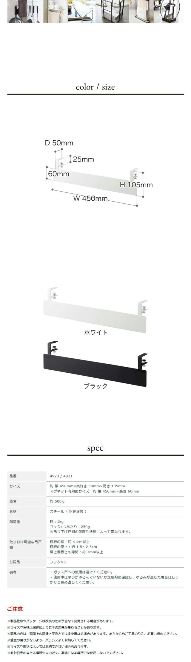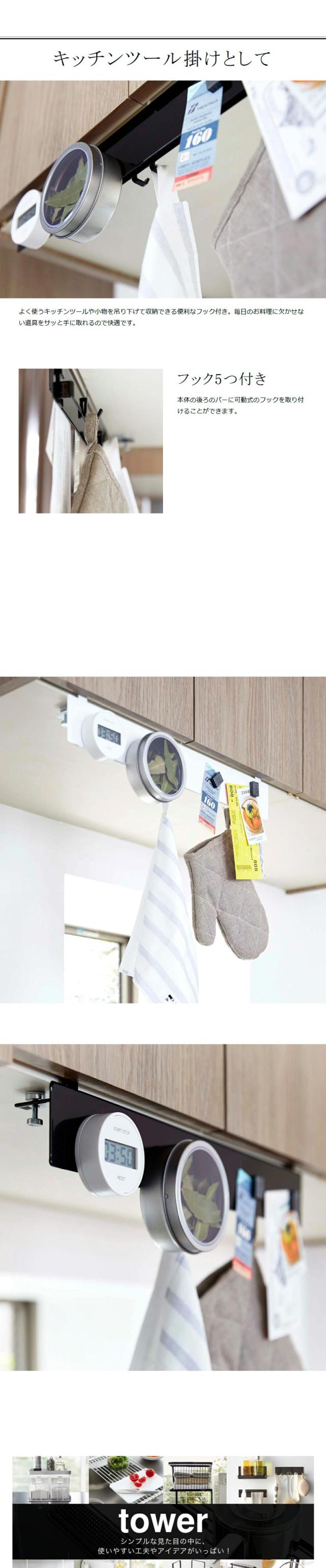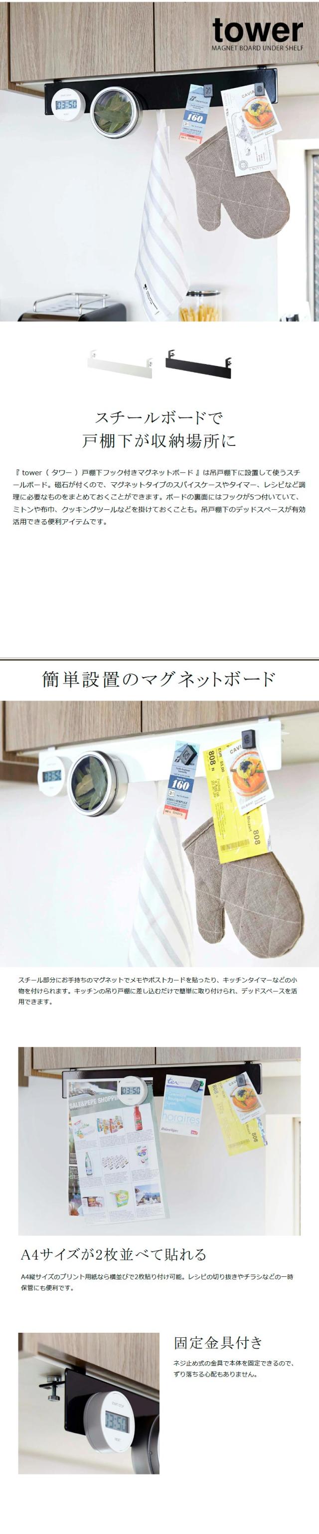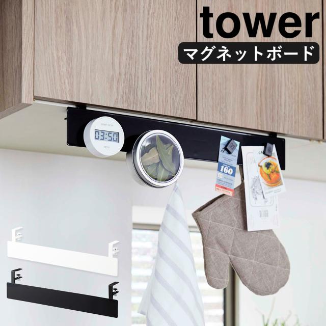 [ 戸棚下フック付きマグネットボード タワー ]山崎実業 tower 戸棚下 フック付き マグネットボード ラック 吊り戸棚 収納 フック キッチン スチール おしゃれ モノトーン キッチン収納 yamazaki ブラック ホワイト 4920 4921【送料無料】
