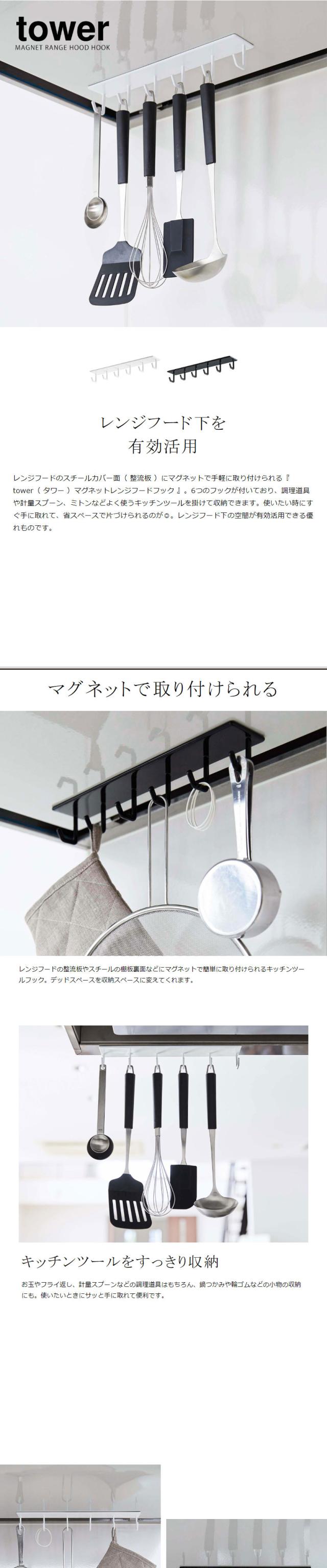 [ マグネットレンジフードフック タワー ]山崎実業 tower フック レンジフード 引っ掛け 換気扇 キッチン収納 マグネット 吊り下げ キッチンツール ターナー フライ返し お玉 収納 調理小物 シンプル 磁石 おしゃれ モノトーン yamazaki ブラック ホワイト 4839 4840