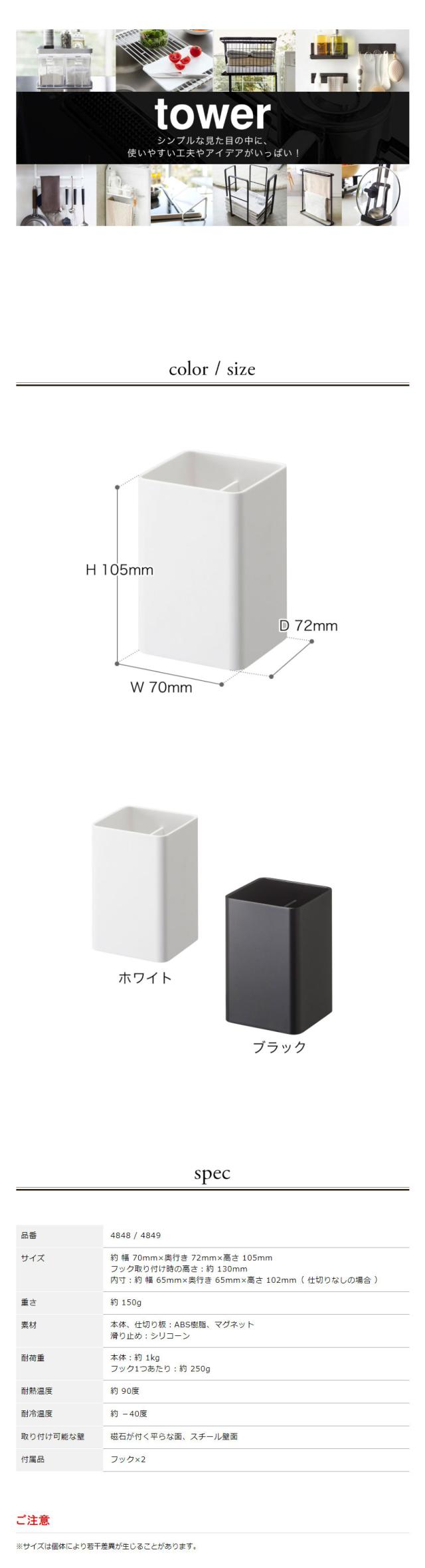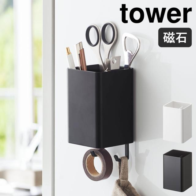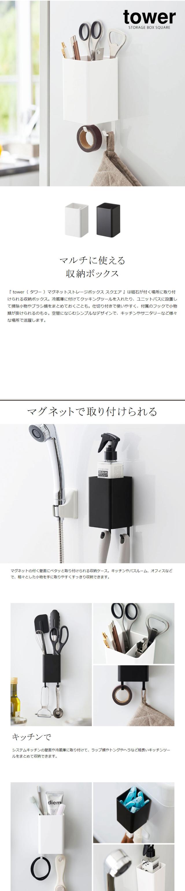 [ マグネットストレージボックス タワー スクエア ]山崎実業 tower マグネット ラック キッチン収納 小物 フック 壁面収納 おしゃれ 洗面 調味調入れ ペン立て サニタリー収納 オフィス 磁石 yamazaki ホワイト ブラック 4848 4849