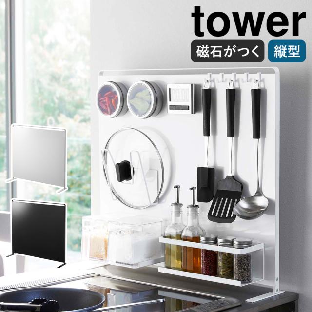 [ キッチン自立式スチールパネル タワー 縦型 ]山崎実業 tower マグネット 収納 スチールパネル 自立式 磁石 キッチンパネル 置き 自立 シンプル キッチン収納 シンク コンロ 台所 おしゃれ モノトーン yamazaki ブラック ホワイト 5124 5125【送料無料】