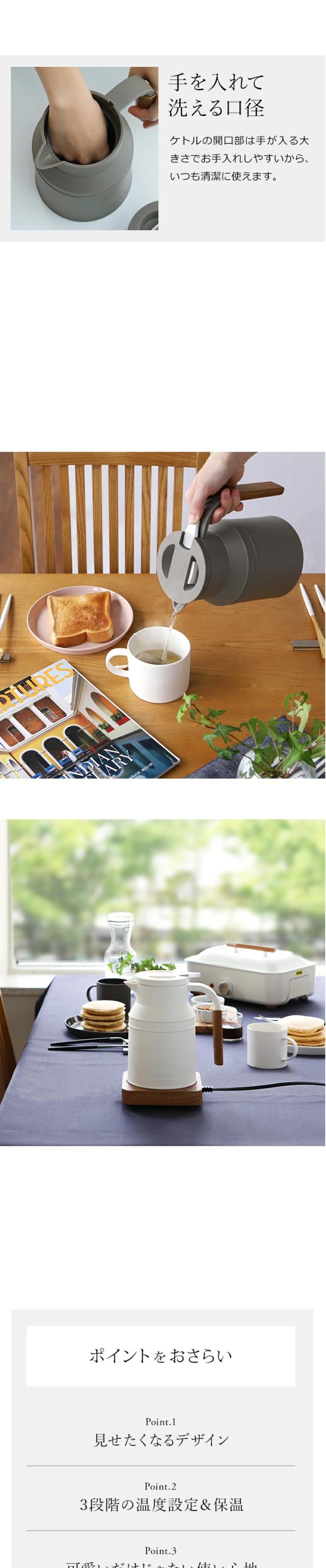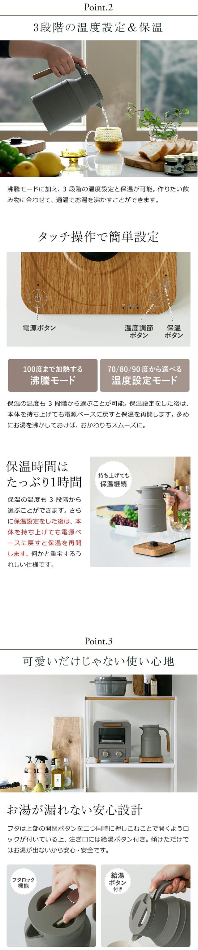 [ mosh!ケトル ]電気ケトル 温度設定 保温 電気ポット モッシュ M-EK1 温度調節 ケトル ポット 授乳 湯沸し おしゃれ かわいい 木目調 北欧 ミルクタンク やかん ミニポット 祝い ギフト【送料無料】