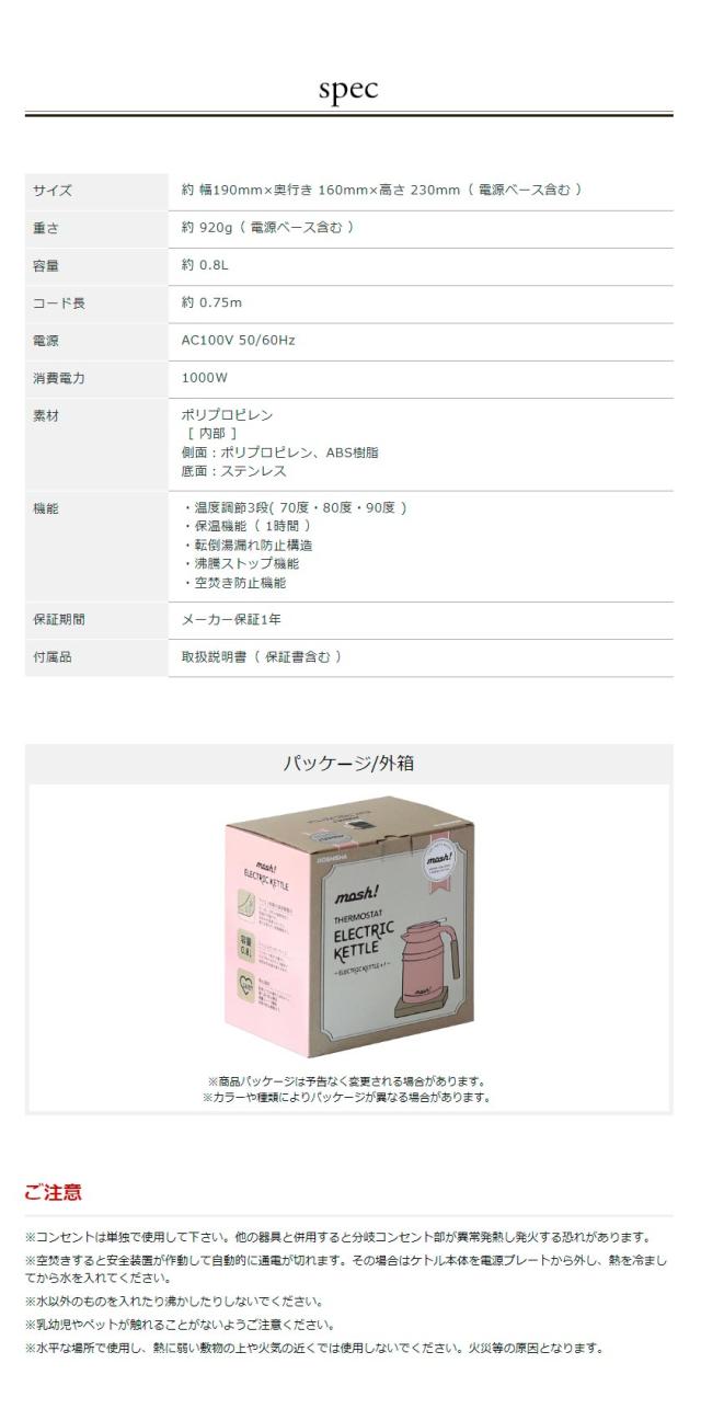 ■ mosh! / モッシュ 電気ケトル M-EK1
