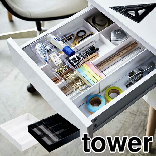 [ 伸縮&スライド デスクトレー タワー ]山崎実業 tower デスクケース 伸縮 デスクトレー 収納 収納ケース デスク用品 調整 ぴったり デスク収納トレー 整理ケース 引き出し デスク スライド ホワイト ブラック yamazaki おしゃれ 3441 3442