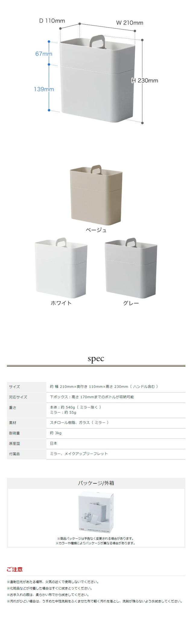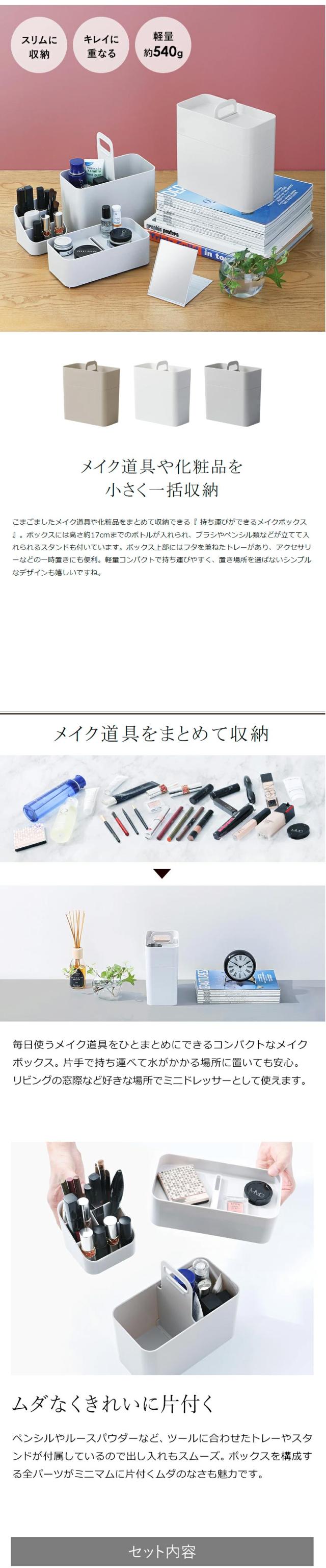 [ 持ち運びができるメイクボックス ]メイクボックス Like-it 持ち運び ライクイット 鏡付き 軽量 コスメケース スリム コンパクト 化粧品 収納 コスメボックス 小物入れ ふた付き 取っ手 救急箱 裁縫箱 収納ケース ホワイト グレー ベージュ【送料無料】