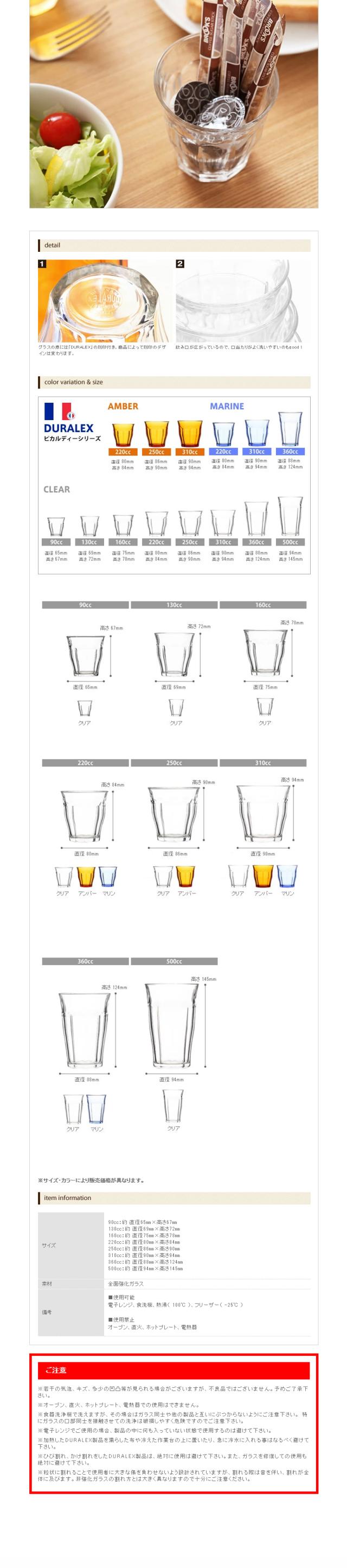 [ DURALEX PICARDIE / デュラレックス ピカルディ アンバー 310cc ]