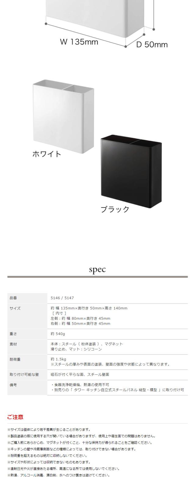 [ マグネットキッチンツールスタンド タワー ]山崎実業 tower キッチンツール スタンド 収納 お玉 マグネット キッチンツールスタンド 磁石 仕切り シンプル キッチン収納 おしゃれ モノトーン yamazaki ブラック ホワイト 5146 5147