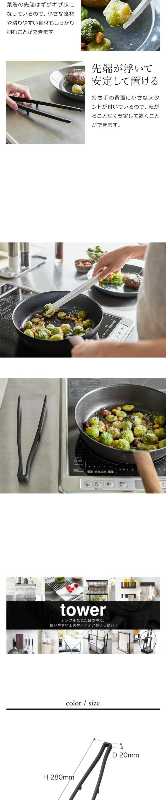 [ シリコーン菜箸トング タワー ]山崎実業 tower 菜箸 シリコン 菜ばし 調理箸 箸トング 耐熱 取り分けトング 取り箸 シリコントング 直置き 食洗機対応 北欧 シンプル おしゃれ モノトーン yamazaki ブラック ホワイト 5195 5196