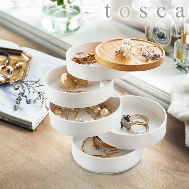 [ 蓋付きアクセサリートレー トスカ 5段 ]山崎実業 tosca アクセサリートレー 小物入れ 5段 アクセサリーケース 回転 ジュエリーボックス ジュエリー収納 フタ付き 指輪 収納 木製 小物収納 韓国インテリア 北欧 シンプル おしゃれ yamazaki ホワイト 5312
